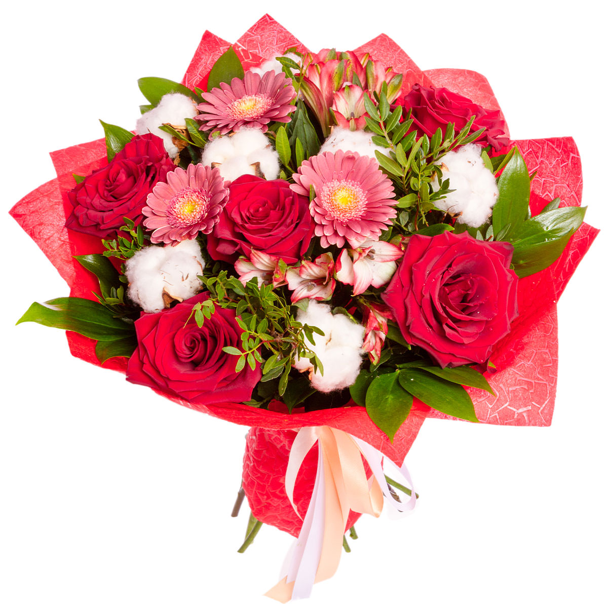 | Состав | Альстромерии, Герберы, Розы, Хлопок |