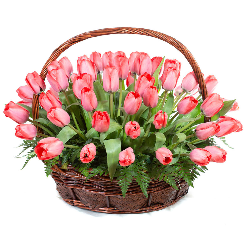 Цветы в корзинке «Розовые тюльпаны» с доставкой по г Верхняя Тура: вы можете заказать букет в интернет-салоне цветов «Флормания» по цене от 3890 руб.